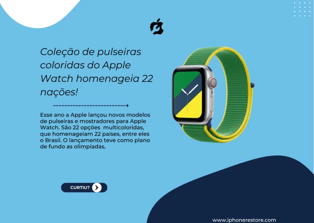 “Cada pulseira tem um respectivo mostrador Listras para baixar com cores que os clientes do mundo todo podem usar para personalizar o Apple Watch e mostrar com ousadia que apoiam o país”, diz a Apple em comunicado.